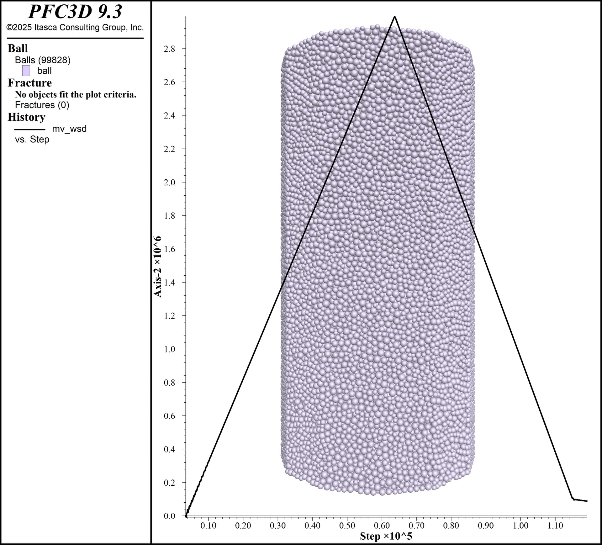 After it initially worked, I re-ran the simulation using both PFC Version 7 and 9. However, the initial portion of the stress-strain curve does not look correct (please see the attached figure). In some runs, I don’t obtain a stress-strain response at all.
